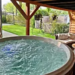 Bosrust & Bubbels - Chalet Met Hottub In Putten ligt op 1 km van Oktober 1944 en nodigt gasten uit om te genieten van een terras. Gasten kunnen genieten van tafeltennis in het chalet, gelegen op ongeveer 15 minuten rijden van het Klimbos Ermelo.